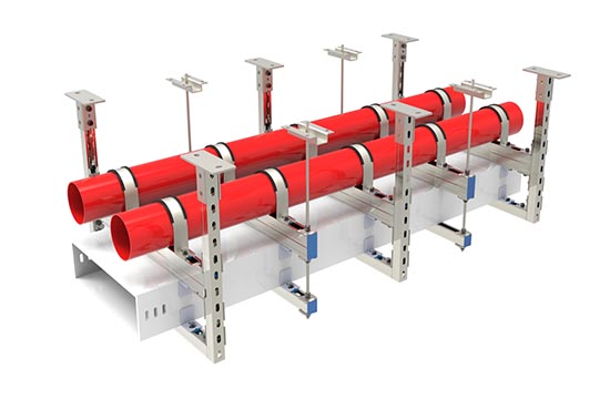 1)、冷熱水、消防、空調等管道系統(tǒng)抗震支吊架適用范圍:懸吊管道中所有超過1.8kN的設備;所有大于等于DN65...